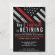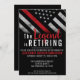 Dieses Design verfügt über eine Feuermelder mit schwarz-weißen Streifen und einen dünnen roten Streifen. Der Text "The Legend is Retiring" setzt sich vor allem aus den Party für den pensionierten Feuerwehrmann, Lieutenant oder Chef zusammen.
