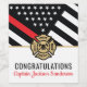Dieses Design ist mit einer Feuerwehrflagge mit schwarz-weißen Streifen und einem dünnen roten Streifen versehen. "Glückwunsch" und das Abzeichen des Feuerwehrmanns steht über dem Namen des schließend oder pensionierten Feuerwehrmanns, Leutnants oder Chefs. Feiern Sie stilvoll!