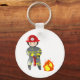 Ein Feuerwehrmann, der ein Feuer mit einem Feuerlöscher auslöscht. Dieses Design wirkt auf diesem Schlüsselanhänger wirklich effektiv