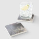 Ein Set aus Untersetzer aus Stein mit einem Foto von Feuerwehrleuten, die gegen ein Hausfeuer kämpfen.