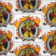 Völlig gekleidete Feuerbekämpfung im feuerbekämpfenden Gang mit Feueraxt! Dieser Feuerwehrmann befürchtet kein Feuer! Kämpfen Sie, um zu leben, Live, Feuerwehrmannslogan mit rasendem Flammenhintergrund zu kämpfen! Heroisches feuerbekämpfendes Geschenk!