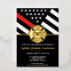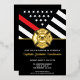 Dieses Design ist mit einer Feuerwehrflagge mit schwarz-weißen Streifen und einem dünnen roten Streifen versehen. "Glückwunsch" und das Abzeichen eines Feuerwehrmanns sitzen über allen Einzelheiten des Party für den pensionierten Feuerwehrmann, Leutnant oder das Party für das Ruhestand. Die Einladungen können auch für einen Feuerwehrakademiker angepasst werden.