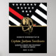 Dieses Design ist mit einer Feuerwehrflagge mit schwarz-weißen Streifen und einem dünnen roten Streifen versehen. Der Helm eines Feuerwehrmanns sitzt über allen Party-Details für den pensionierten Feuerwehrmann, Leutnant oder das Party für das Ruhestand des Chefs. Die Einladungen können auch für einen pensionierten Feuerwehrmann angepasst werden.