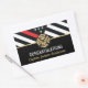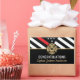 Dieses Design ist mit einer Feuerwehrflagge mit schwarz-weißen Streifen und einem dünnen roten Streifen versehen. "Glückwunsch" und das Abzeichen eines Feuerwehrmanns sitzen über dem Namen des schließend oder pensionierten Feuerwehrmanns, Leutnants oder Chefs. Feiern Sie stilvoll!