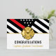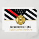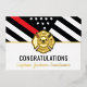 Dieses Design ist mit einer Feuerwehrflagge mit schwarz-weißen Streifen und einem dünnen roten Streifen versehen. "Glückwunsch" und das Abzeichen des Feuerwehrmanns steht über dem Namen des schließend oder pensionierten Feuerwehrmanns, Leutnants oder Chefs. Feiern Sie stilvoll!