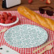 Dekorative Dämme in Vintag beeinflusstem Muster, aquamarine Farbdetails in einer Hintergrundfarbe Ihrer Wahl.