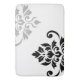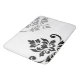 Vintag beeinflusster blüh, Scroll und Blattdämpfer in schwarz-grauem Detail auf weißem Hintergrund.