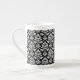 Feuille Damask Muster Weiß auf Schwarz Prozellantasse