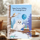 This charming January birthday card features a striking Snowy Owl holding a snowflake balloon beside a rich chocolate birthday cake, set within a cozy winter scene. In the background, a small Barn Owl looks on from the snowy landscape, adding a gentle touch of nature and seasonal charm. Perfect for a fiance who appreciates wildlife, peaceful winter moments, and unique artwork, this nature-inspired birthday card brings warmth, character, and winter wonder to their special day.