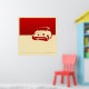 Original Single-Farbe gezeichnet von einem Fiat Cinquecento 1959, in einem roten Farbverlauf mit einem hellen cremefarbenen Hintergrund.