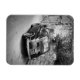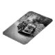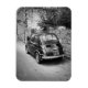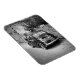 Der rechteckige Foto-Magnet mit einem Vintagen alten, kleinen FIAT 500-Wagen in einer Straße in einer italienischen Stadt in stilvollem Schwarz/Weiß.