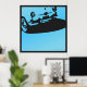 Fiat 600 Detail - Hellblau auf schwarz Poster