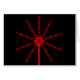 Eine Dusche binärer Daten sprüht aus einem brillanten, rot-laserbeleuchteten Glasfaserkabel und sieht aus wie eine leuchtend rote Blume von Einsen und Nullen. Perfektes Geschenk für Computer- oder Datenkommunikationsingenieure und Techniker oder für jeden, der ein Techno-Look mag.