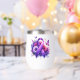 Lila Fibromyalgie Bewusstsein Band umgeben von Blume und Schmetterlingen.