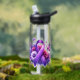 Lila Fibromyalgie Bewusstsein Band umgeben von Blume und Schmetterlingen.