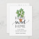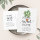 Charme und moderne bewegende Ankündigungskarten lasse Freunden und Familie von Ihrer neuen Zuhause Sweet Zuhause! Das Design zeichnet sich durch eine lebendige, grüne Aquarellfarben-Fiddle-Blatt-Feigenpflanzenillustrierung mit "Zuhause Sweet Zuhause" in weichem schwarzem Skript und Blocktypografie aus. Verwenden Sie die Vorlagenfelder, um Ihr benutzerdefiniertes Intro, Ihre neue Adresse und Ihre Namen hinzuzufügen. Informationen wiederholt sich auf der Rückseite mit Platz für die Adressierung des Empfängers.