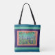 Handlicher Totbeutel mit Vollbild. Hübsche Foto-Kunst; Feld von Texas Bluebonnets, gerahmt in lila, Lachs und Aquas. Stellen Sie auf Wunsch Ihren Namen auf der Vorderseite ein oder verließ leer.