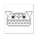 Holzkunst-Briefmarke mit einer wütenden, dreieckigen Hundezeichnung mit scharfen, spitzen Zähnen.
