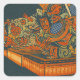 Fierce Kabuki Warriors – Japanese Woodblock Spirit Quadratischer Aufkleber
