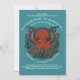 Einladungen zu einem Piraten- oder nautischen Themenevent mit einem Cartoon eines roten Rostktopus mit gemeinem Frosch, kurbelnden Tentakeln in alle Richtungen und farbigen Sauckern ausgesetzt. Ein kleiner Abfluss von Fischen, der im Hintergrund vorbeifließt. Für Fans von Tintenfischen und Kopffüßern mit Einstellung. Personalisieren Sie das Anzug Ihres Ereignisses mit Änderungen an den bearbeitbaren Textfeldern. Passen Sie Ihre Einladungen an, um die Farbe des grünen Ozeanhintergrunds zu ändern, die durch die halbtransparente Hintergrundform umgibt und zeigt.