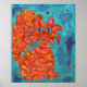 Fiery Cat auf Türkis Poster