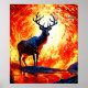 Fiery Deer Stance-Crimson Stag Scene Poster