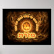 Ein feuriger Fraktal-Mizrach. Hebräischer Text mit den Worten "Mizrach" und "Mimizrach shemesh ad mevo'oh mehullal shem Adonai" (Vom Sonnenaufgang bis zu seinem Untergang ist der Name des Herrn zu loben), Psalmen 113:3. Das hebräische Wort "mizrach" (östlich) bezieht sich auf eine Zierwand, die zur Angabe der Gebetsrichtung in jüdischen Zuhause verwendet wird. Der Talmud legt die Regel fest, dass, wenn man in der Diaspora betet, er sich in Richtung Israel lenken soll. Die meisten Juden in der Diaspora leben westlich von Jerusalem, also sehen sie sich während des Gebet östlich. Mizrach kommt aus dem Wurzelwort "Zarach", das "zu leuchten" bedeutet. Mizrach bezieht sich auch auf die Mauer der Synagoge, die nach Osten zeigt, wo Sitze für den Rabbi und andere Würdenträger reserviert sind. Der Brauch beruht auf dem Gebet Salomons (I Könige 8:33, 44, 48; II Chron. 6.34 Uhr). Eine weitere Passage, die diese Regel unterstützt, findet sich im Buch von Daniel, das besagt, dass in der oberen Kammer des Hauses, wo Daniel dreimal am Tag betete, dessen Fenster in Richtung Jerusalem geöffnet wurden (Dan 6:10). Die Tosefta verlangt, dass der Eingang zur Synagoge auf der östlichen Seite mit der Gemeinde nach Westen liegt. Die Anforderung beruht wahrscheinlich auf der Ausrichtung des Zeltes der Begegnung, das seine Tore auf der Ostseite hatte (Num 2:2-3; 3:38), oder Solomons Tempel, dessen Portale im Osten waren (Ezek 43:1-4). Maimonides versuchte, die Bestimmung der Tosefta mit der Forderung in Einklang zu bringen, in Richtung Jerusalem zu beten, indem er erklärte, dass die Türen der Synagoge nach Osten zeigen sollten, während die Arche "in die Richtung gestellt werden sollte, in die die Menschen in dieser Stadt beten", d.h. in Richtung Jerusalem. Die Shulkhan Arukh Platten die gleiche Regel, aber sie empfiehlt auch, sich in Richtung Südosten zu drehen, anstatt nach Osten, um den Anschein zu vermeiden, die Sonne zu verehren. Wenn eine Person nicht in der Lage ist, die Punkte des Kardinals zu ermitteln, sollte sie ihr Herz in Richtung Jerusalem lenken. Es ist in den jüdischen Zuhause üblich, die Mauer in Richtung Mizrah zu markieren, um das Gebet zu erleichtern. Zu diesem Zweck verwenden die Menschen künstlerische Wandschilder, die mit dem Wort mizrah und biblischen Passagen wie "Vom aufgehenden (mi-mizrah) der Sonne bis hin zu ihrem Untergang, der Name des Herrn ist zu loben" (S. 113:3), kabbalistische Inschriften oder Bilder von heiligen Orten. Diese Plaques sind in der Regel in Räumen untergebracht, in denen Menschen beten, wie zum Beispiel im Wohnzimmer oder in den Schlafzimmern.