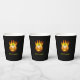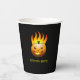 Fiery Pumpkin Gesicht auf einem schwarzen Papier Cup.