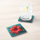 Eine helle und gewagte Blume aus chinesischem Hibiskus mit glänzenden Blütenblättern, die vor einem sanften türkisfarbenen Hintergrund dargestellt sind.