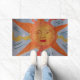 Eine flammende, feurige Sonne strahlt in einem wolkenlosen blauen Himmel und sendet ihre Wärme und ihr Licht auf die Erde unten. Lebendige Orange-, Gelb- und Rottöne schaffen eine phantastische, feurige Wasserfarbe, die Sonnenlicht und Wärme in Ihre Zuhause bringt. Also wählen Sie dieses beeindruckende feurige Sonnendesign mit einem ruhigen glücklichen Gesicht heute.