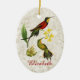 Zwei Rot-, Gelb- und Grün-Kolibris-Erholung auf einer hellgelben Orchidee mit einem hellen, goldgelben Marmorboden. Personalisierungsoptionen auf Vorder- und Rückseite, oder Textentfernen für eine elegante naturlich inspiriert Ergänzung zu jedem Weihnachtsbaum. Perfekter jeden Anlaß für Liebhaber von Kolibri.