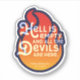Aufkleber mit dem Zitat von William Shakespeares The Tempest "Hell ist leer, und alle Teufel sind hier" vor einem orangefarbenen Feuer auf blauem Hintergrund. *Bitte beachten Sie, dass das Zazzle-Wasserzeichen, das in der Zoomvorschau angezeigt wird, NICHT auf dem gedruckten Endprodukt erscheint. © Bookish and Wonderful