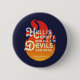 Ein Buchknopf mit dem Zitat von William Shakespeares The Tempest "Hell ist leer, und alle Teufel sind hier" vor einem orangefarbenen Feuer auf blauem Hintergrund. *Bitte beachten Sie, dass das Zazzle-Wasserzeichen, das in der Zoomvorschau angezeigt wird, NICHT auf dem gedruckten Endprodukt erscheint. © Bookish and Wonderful
