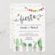 Diese lustige Einladung enthält Aquarellbilder mit goldenen Glitzer-Akzenten und farbigen Fiesta-Fahnen.