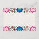 This Fiesta Colorful Floral Botanical Spanish Wedding Enclosure Card design features a vibrant floral border with symmetrical patterns of red, blue, pink, and yellow flowers, creating a lively and joyful frame around the central area. Small heart motifs are interspersed among the flowers, adding a touch of warmth and romance to the composition. The use of bold colors and stylized floral shapes captures a festive, folk-inspired aesthetic that would be ideal for a celebratory wedding stationery.