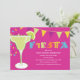 Dieser Spaß und bunte Fiestaeinladung kennzeichnet Dekorationen eines Margaritaglases und -Party nahe bei dem Wort "Fiesta" in koordinierenfarben. Textfelder sind völlig kundengerecht. Grafiken ©Lilly Bimble.