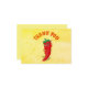 Ein roter und scharfer Pfefferkarikaturencharakter, Vintager, alter Papierhintergrund. Kundenspezifische Dankeschön Karten. Bearbeiten Sie die Nachricht auf der Rückseite, um sie anzupassen. Karten für alle Feste, die Sie sich vorstellen können!