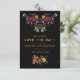 Diese moderne und farbenfrohe mexikanische Fiesta Theme Save the Date-Karte bietet eine Dekoration mit bestickten Blume und dekorativen Motiven. Das festliche Design eignet sich perfekt für ein erfolgreiches und fröhliches Event und eignet sich für jede Jahreszeit. Die Rückseite der Karte weist ein passendes Muster auf.