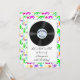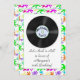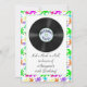 Eine Spaßgeburtstagseinladung mit Fünfzigerjahre inspirierte Thema. Buntes Neon splattered Grenz- und Vinylaufzeichnung. Passend für Männer und Frauen alles Alters. Einfach, mit den Details Ihres Ereignisses besonders anzufertigen. Einladungen kommen mit Umschlägen.