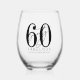 Celebrate in style with this modern stemless wine glass, perfect for a “Sixty and Fabulous” birthday celebration or any milestone event. The glass features a large “60” across most of the front, with the word “sixty” written in elegant black script layered over it. Just below, “fabulous” appears in bold black sans serif font for a sleek, modern look.
