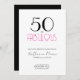 Minimal modern Fifty and Pink Fabulous 50th birthday invitation that you can personalize and send out for your fiftieth birthday party celebration. The words "Fifty and Fabulous" are set using trending sleek and elegant font typography with a pink elegant background with the number 50 standing out.