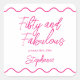 Fifty and Fabulous Pink Script Quadratischer Aufkleber