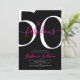 Fifty and Fabulous script, minimal black, pink and white modern 50th birthday invitation that you can personalize and send out for your fiftieth birthday party celebration. The "50 and Fabulous" is set using popular script font typography. The text colors can be changed using the edit menu.