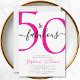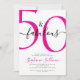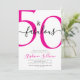 Fifty and Fabulous script, minimal pink and black modern 50th birthday invitation that you can personalize and send out for your fiftieth birthday party celebration. The "50 and Fabulous" is set using popular script font typography. The text colors can be changed using the edit menu.