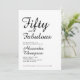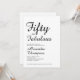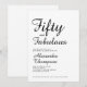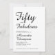Fifty and Fabulous script minimal black modern 50th birthday invitation that you can personalize and send out for your fiftieth birthday party celebration. The words "Fifty and Fabulous" are set using popular script font typography. The text colors can be changed using the edit menu.