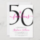 Fifty and Fabulous script, minimal pink and black modern 50th birthday invitation that you can personalize and send out for your fiftieth birthday party celebration. The "50 and Fabulous" is set using popular script font typography. The text colors can be changed using the edit menu.