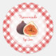 Maßgeschneiderte Retro-Aufkleber für hausgemachte Feigen, Marmelade oder Konserven mit frischen Feigen auf roten und weißen Gingham-Tischdecken. Sie können auf dem Deckel oder auf dem Glas selbst befestigt werden und haben eine personalisierte Sammlung. Auch andere Früchte konservieren Marmoraufkleber!