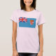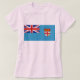 Die Vorderseite dieses T - Shirt zeigt mutig die Fidschi-Fahne mit ihrem charakteristischen Wappen-Set in einem himmelblauen Schild. Hinter dem Bild befindet sich eine attraktive Landkarte von Fidschi.