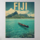 Dive into tropical calm with this vintage Fiji travel poster, showcasing clear blue waters and traditional island canoes. Ideal for ocean lovers and wanderlust-filled walls.