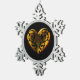 Elegantes, verwurzeltes Filigree über einem gotischen, juwelenartigen goldenen Herz, ein wenig gebrochen, aber nicht gebrochen. Ideal für Ihre Weihnachtsdekoration in Goth oder Steampunk